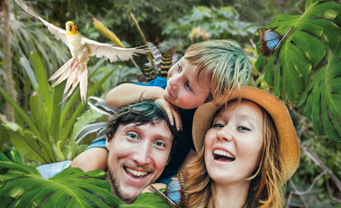 Mitten in Potsdam gibt es einen Ort, an dem das ganze Jahr tropische Urlaubsstimmung herrscht: die Biosphäre Potsdam. Die Dschungellandschaft mit über 20.000 prächtigen Tropenpflanzen und vielen exotischen Tieren sowie einem stündlichen Gewitter versetzt die Besucher in eine ferne Welt. Die Reise führt über verschlungene Pfade, vorbei am Wasserfall, bis auf den Höhenweg, der sich über den Baumkronen befindet. Von hier aus lassen sich besonders gut die freifliegenden Vögel sowie das Weißbüscheläffchen-Paar in seinem Kletterturm beobachten.