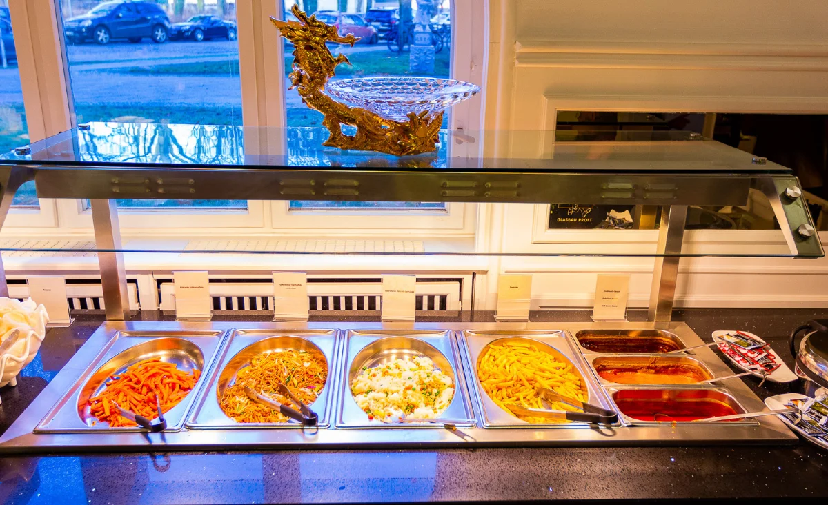 Freuen Sie sich auf ein breites Speisenangebot: Neben Klassikern wie traditioneller Peking Ente erwarten Sie auch moderne Köstlichkeiten wie frisches Sushi oder ein leckeres Dessert.